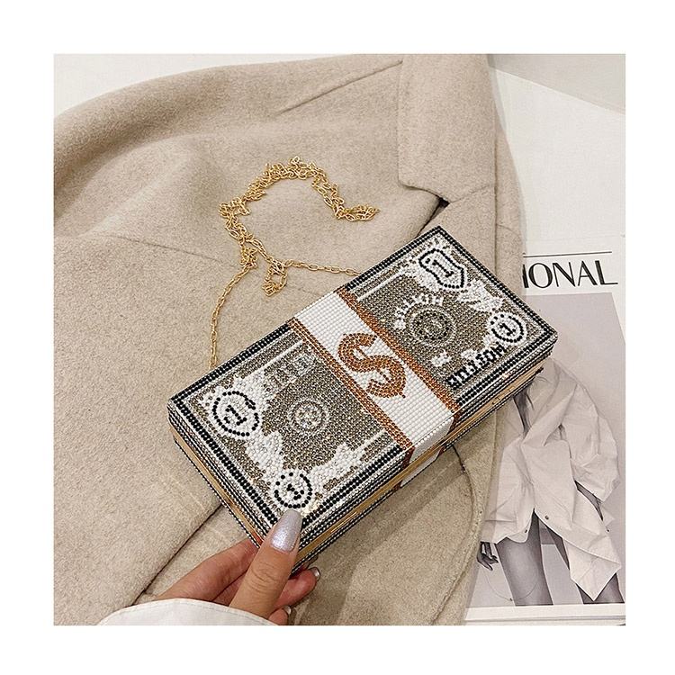 New Dinner Party Fashion Bags Dollar Money Shoulder Bag for Women Luxury Mini Box Purses Handbags Rhinestone Evening Clutches