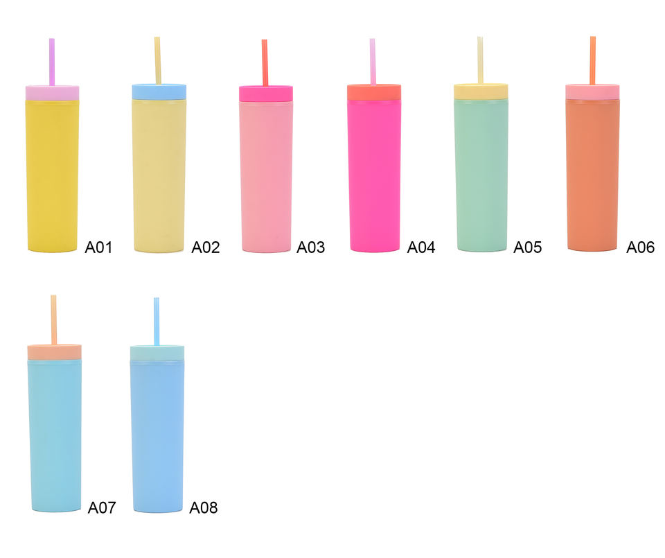 Nuova Tazza Doppia con Cannuccia Dritta, Stile Americano, Vernice Gommata Macaron, Semplice, in Plastica Riutilizzabile, con Tappo a Vite