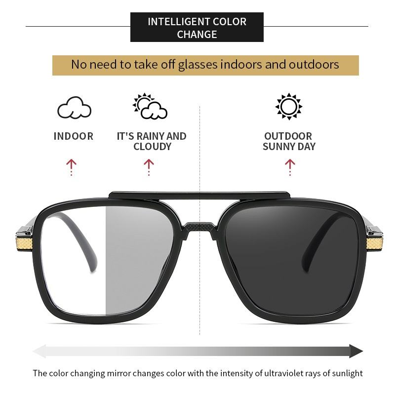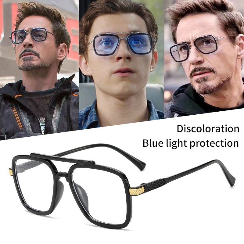 Nuovi Occhiali da Sole a Doppia Montatura con Lenti Cangianti, Stile Iron Man, Occhiali da Sole e Anti-Luce Blu per Uomo