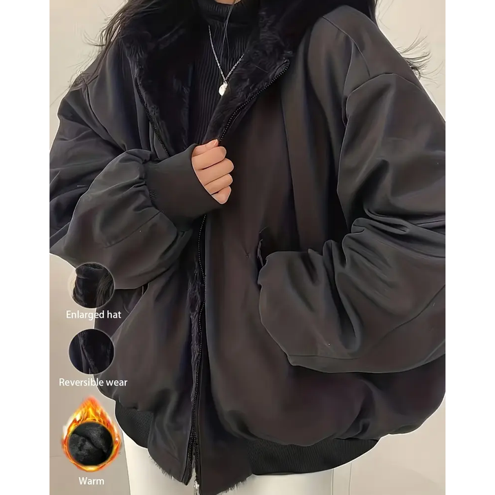 New Double-sided Women's Winter Jacket Loose Hooded Thick Fleece Coat Black Oversized Coats