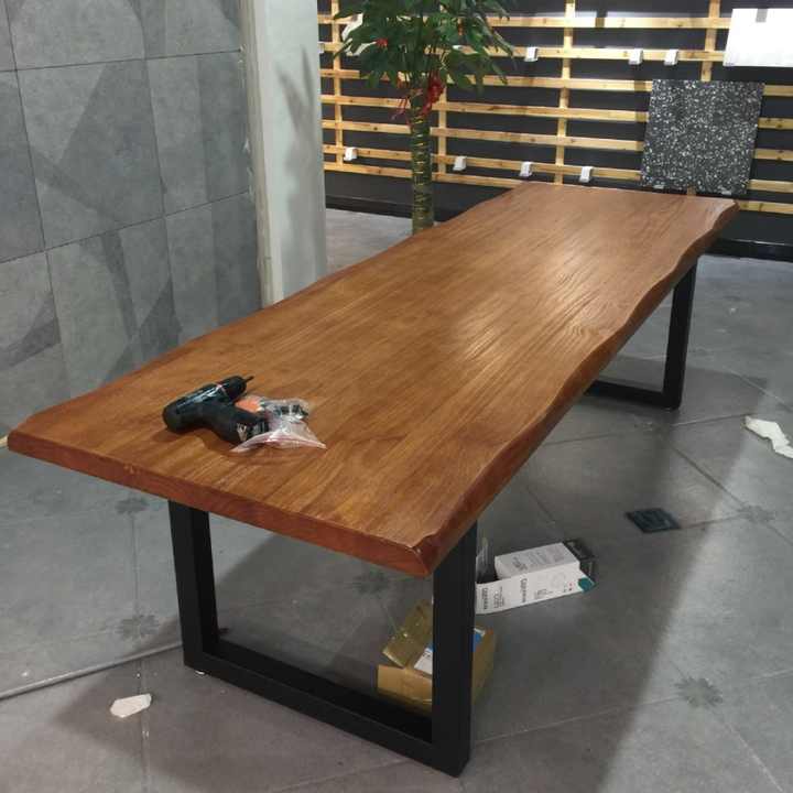 New Durable Live Edge Dining Table with Solid Wood Metal Crafts Legs Outdoor Dining Room and Living Room Sets