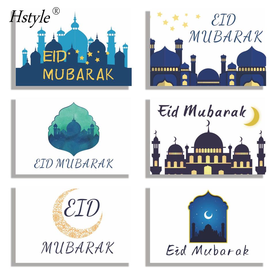 New Eid Al-Fitr Greeting Card Set with Star Moon Castle Islamic Greeting Cards for Muslim Traditional Party Decoration HS414