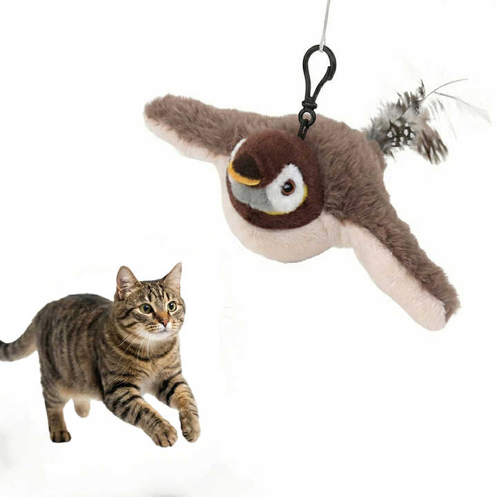 Nuovo Giocattolo Interattivo per Gatti Elettrico Vibrante con Simulazione del Canto degli Uccelli, Stick in Peluche per il Gioco Transfrontaliero