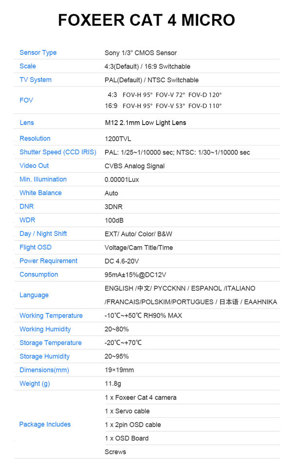 New FOXEER CAT4 1200TVL Starlight 0.00001LUX Super Starlight Camera Low Latency Less Noise Camera Fo