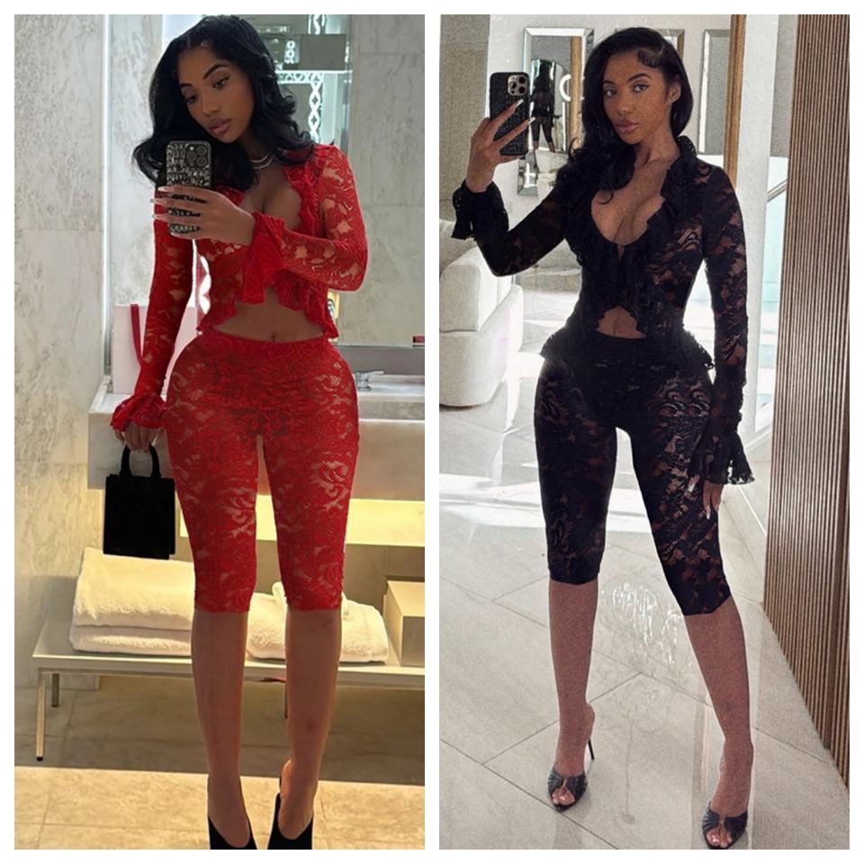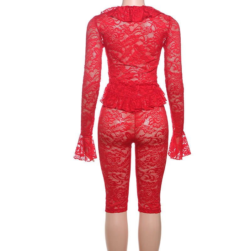 Nuovo Set di leggings in due pezzi in pizzo elasticizzato autunnale con Top corto a manica lunga e pantaloni Capri Fitness Slim