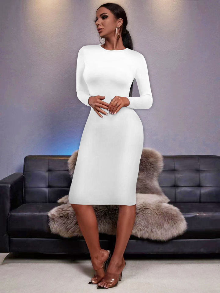 TOB Abito donna portafoglio girocollo a maniche lunghe in poliestere e spandex, morbido ed elasticizzato, taglie S-XL, 1 pz