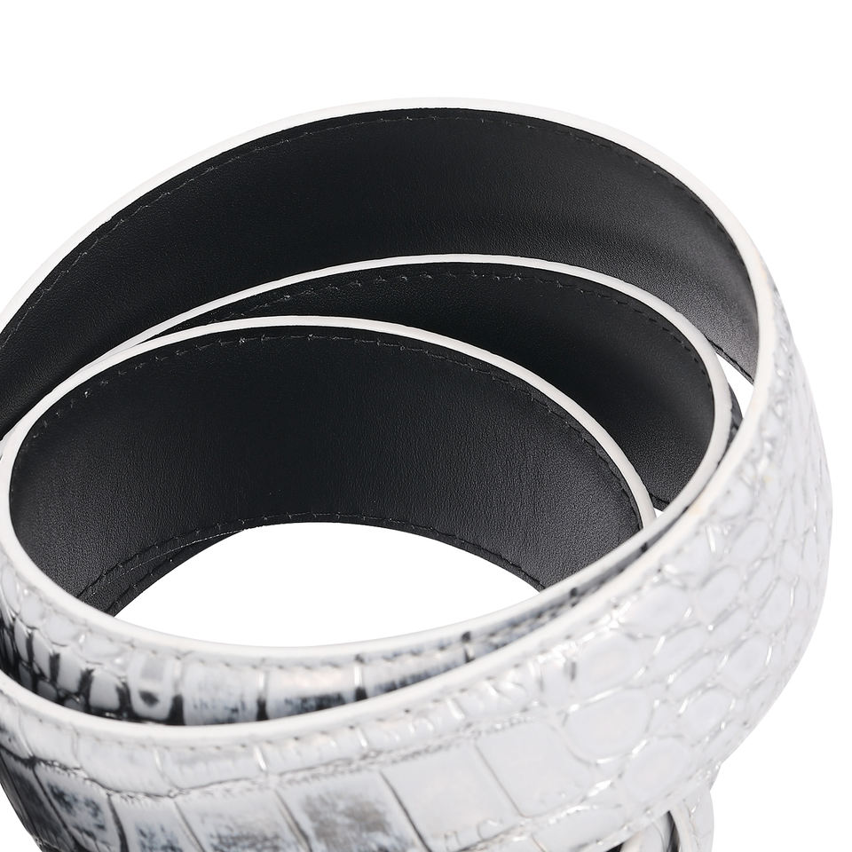 Nuova Cintura di Design in Vera Pelle di Coccodrillo Bianca e Argento per Uomo e Donna, Personalizzabile