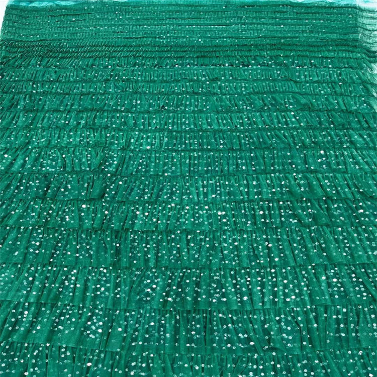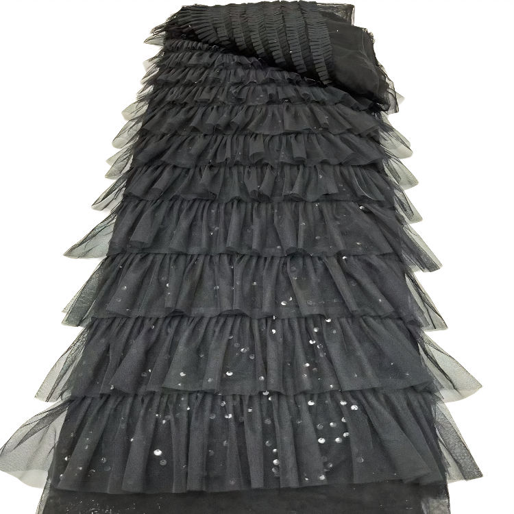 Tessuto di Tulle con Pizzo Ricamato a Rete di Lusso di Alta Qualità con Paillettes e Volant