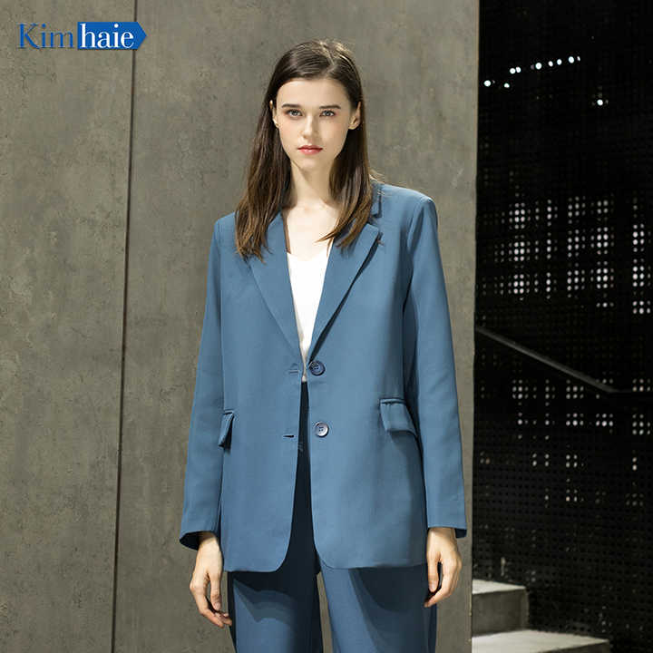 New Fashion Ladies Blue Single Breasted Business Suit Daily Wear Light Suit Formal Women Suits Plus Size Regular V-neck