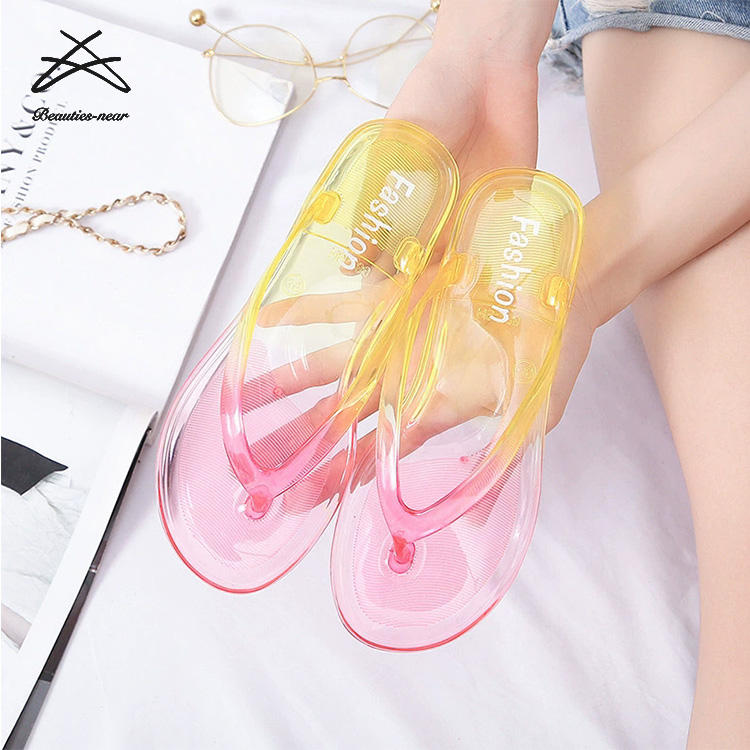New Fashion Lady Women PVC Pool Beach Bathroom Thong Flat Flip Flop Slides Slipper Transparent Gradient Slippers Flip Flops
