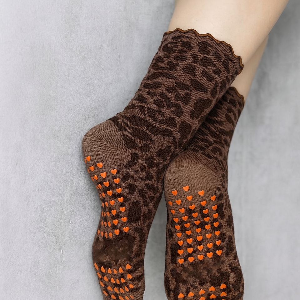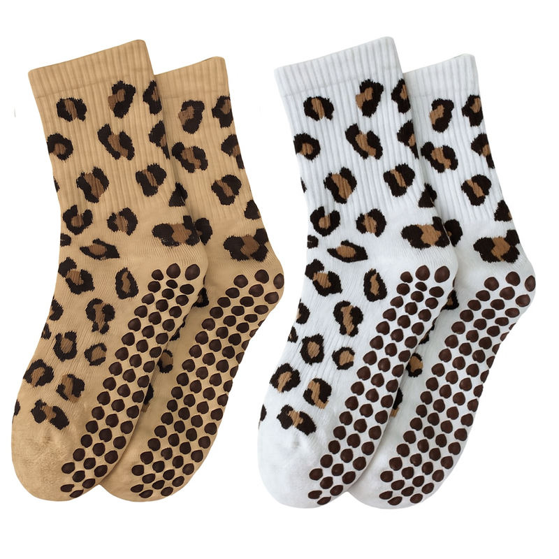Nuove calze rosa alla moda con impugnatura leopardata stampate su misura il tuo modello Jacquard ricamo Yoga Pilates calze