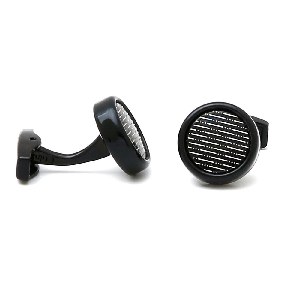 New Fashion Shirt Cuff Links Men's Cufflinks with White Stripes Round Design Black Shirt Accessory