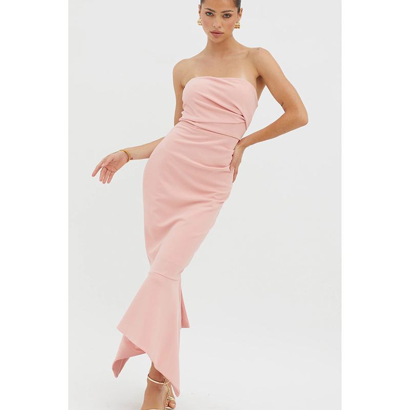 Nuovo stile moda con scollo quadrato a schiena bassa elegante e senza maniche con coulisse abito lungo lavorato a maglia da donna