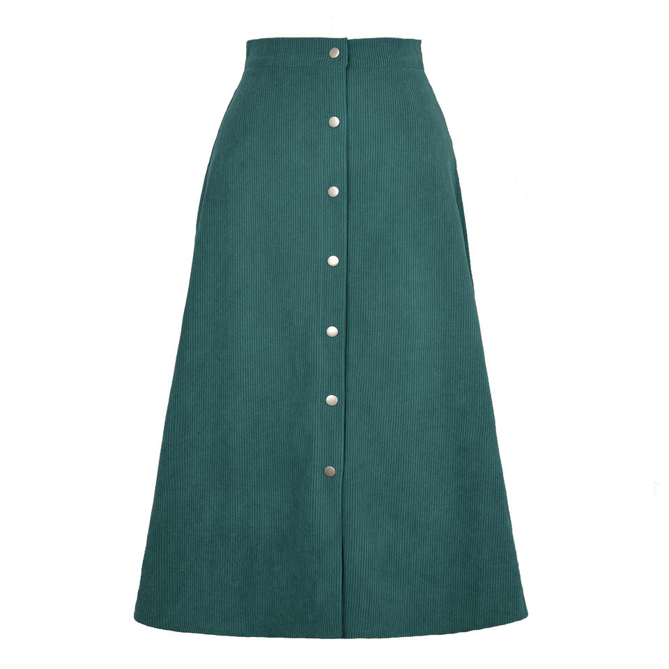 Nuova moda donna autunno tinta unita gonna lunga in velluto a coste gonna monopetto a vita alta e gonna Casual