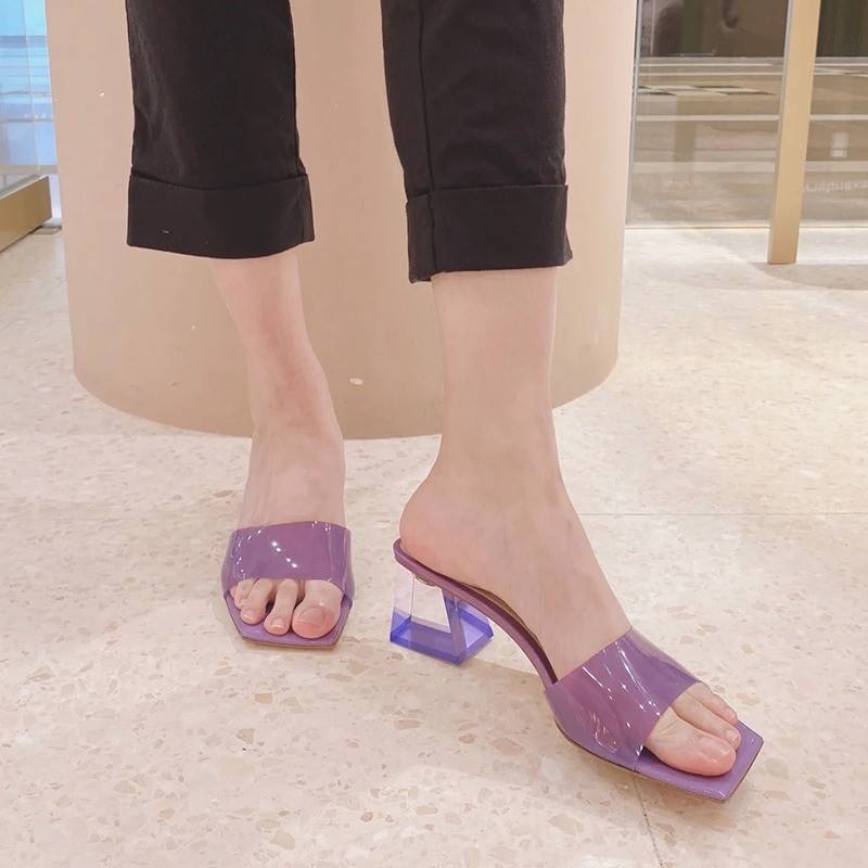 New Fashion Women Girls Summer Transparent Crystal Thick Heels Outdoor Sandal Shoes Daily Casual Shopping Slipper