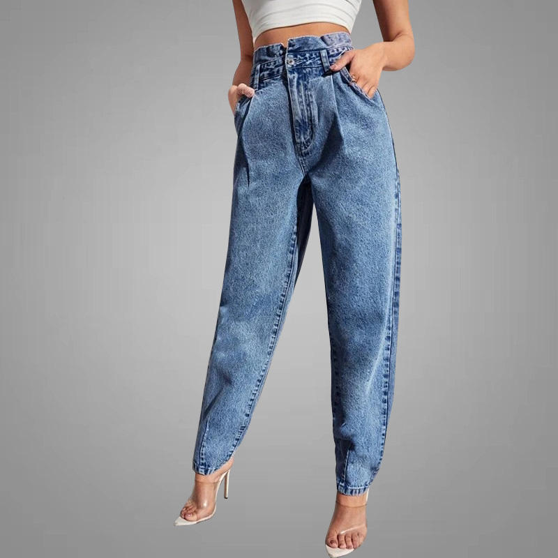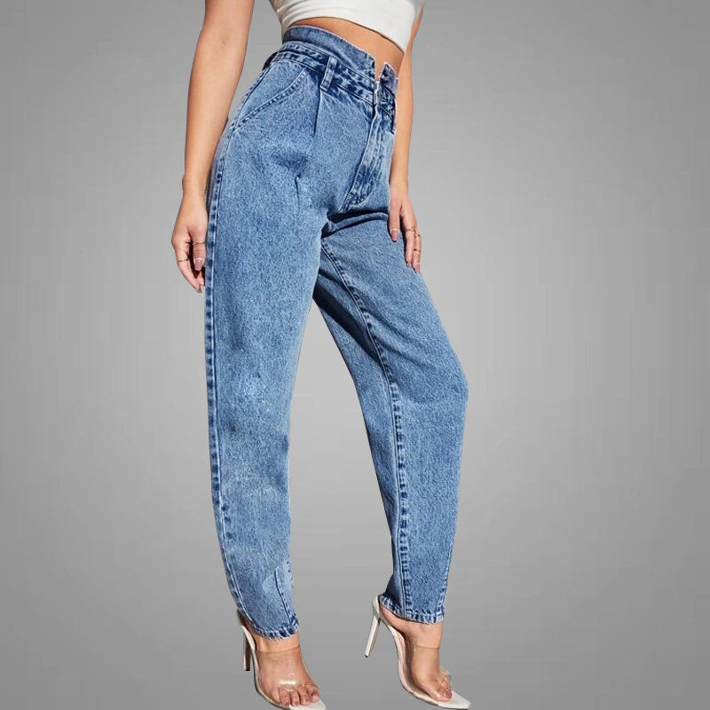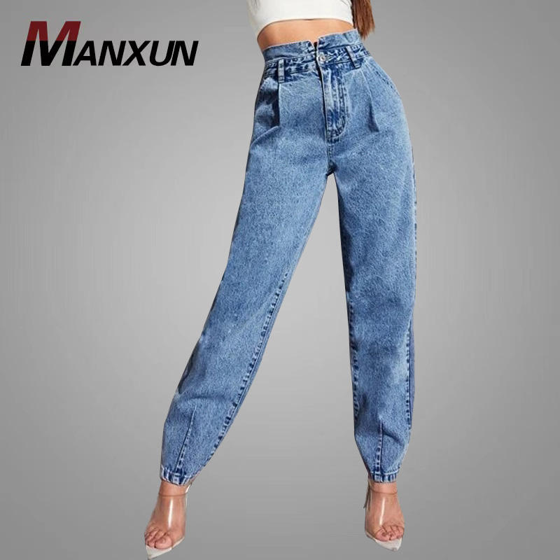 New Fashion Women Wear High Waist Slant Pocket Mom Jeans Women's Pants Zipper Fly Carrot Ladies Denims Pants Plain Jeans Pants