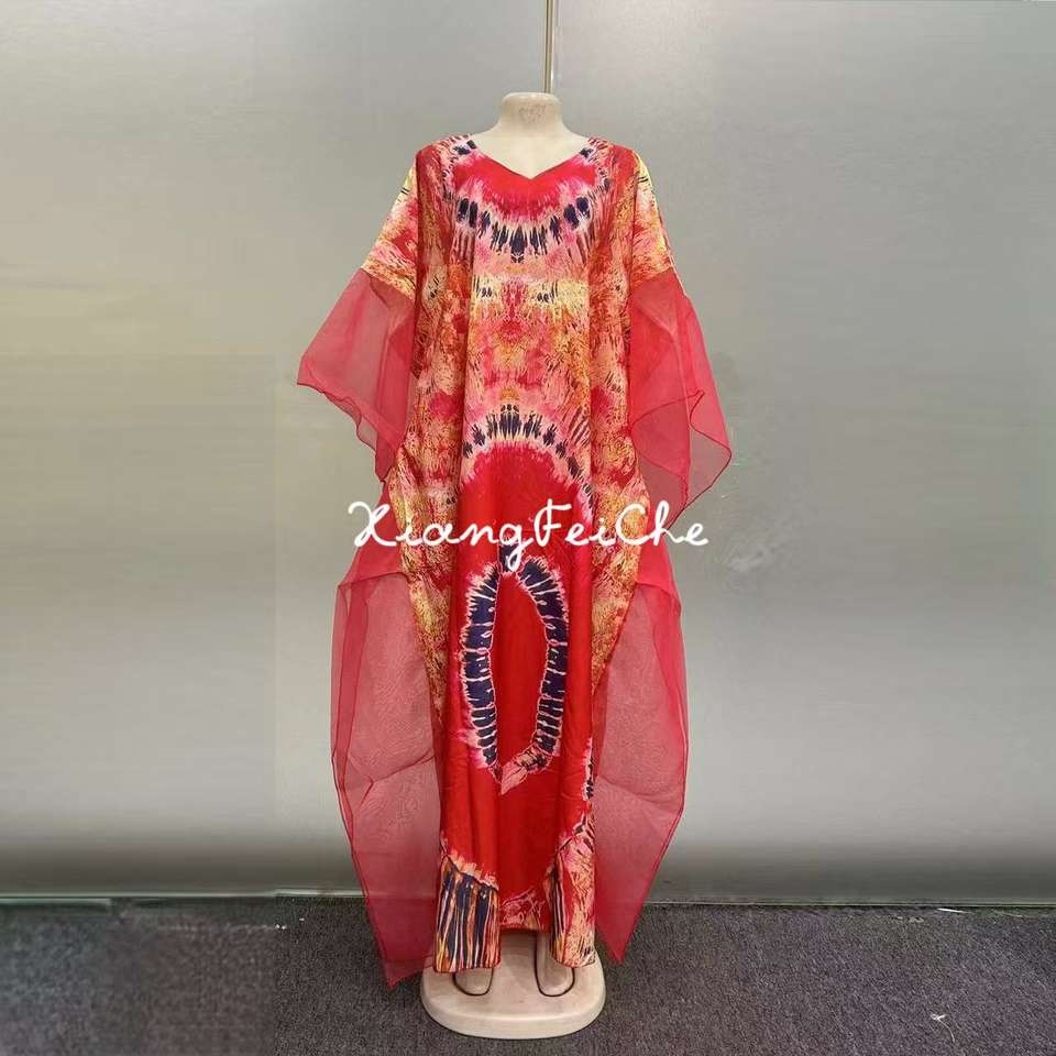 New Fashionable European American Patchwork Organza Retro Long Robe Large Hem African Summer Printed Women Loose Dress