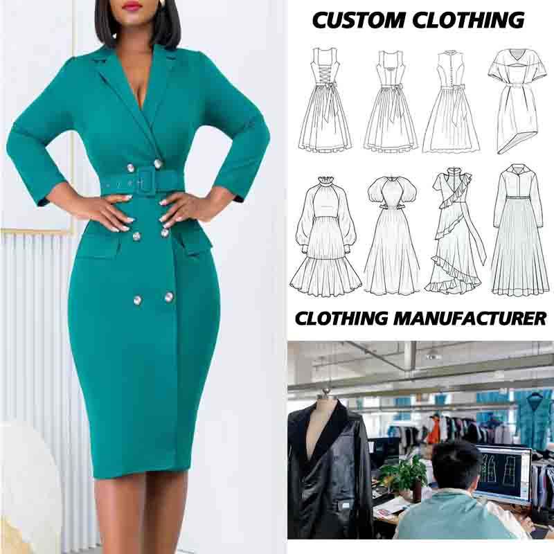 New Fashionable V Neck Long Sleeve Ladies Double Breasted Office Suit Mini Casual Women's blazer Formal Dress
