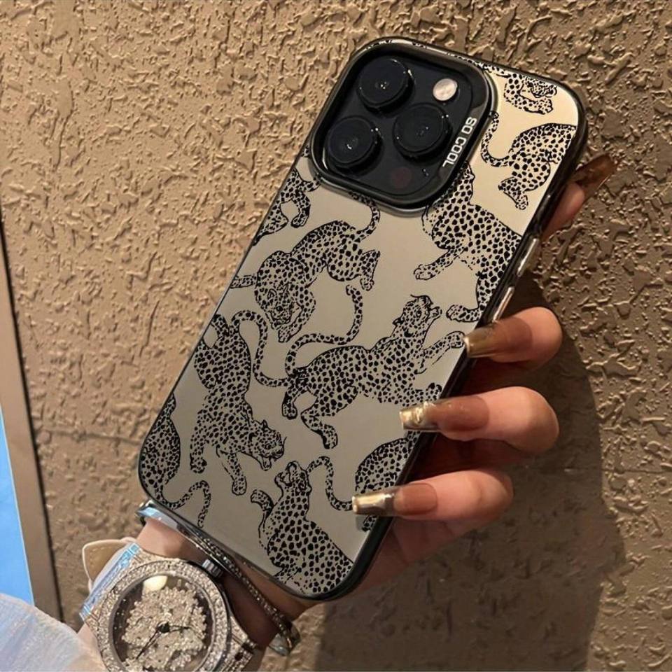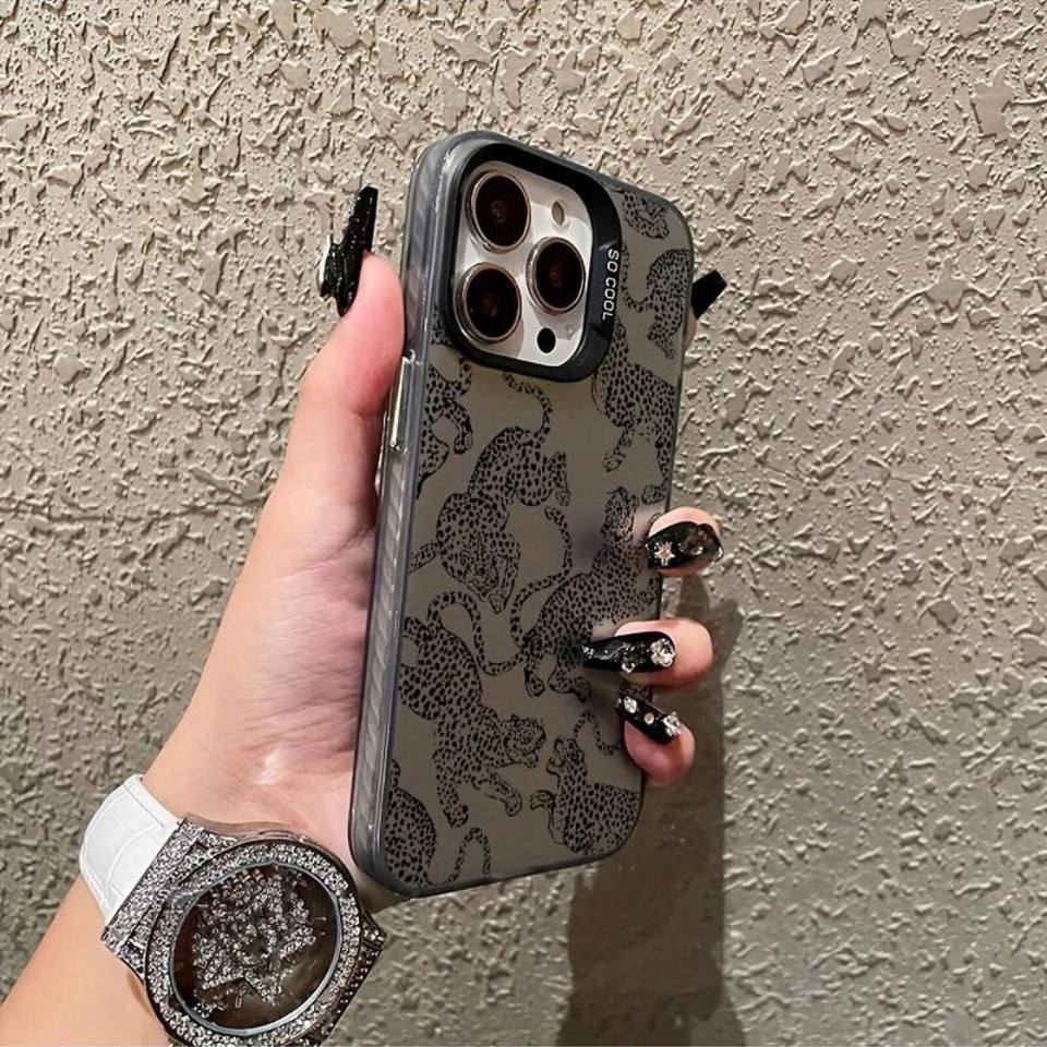 Nuova Cover per iPhone 17 16 15 14 Pro Max con Motivo Leopardo Selvaggio Pantera Nera a Schermo Intero e Protezione Lente con Foro Ampio