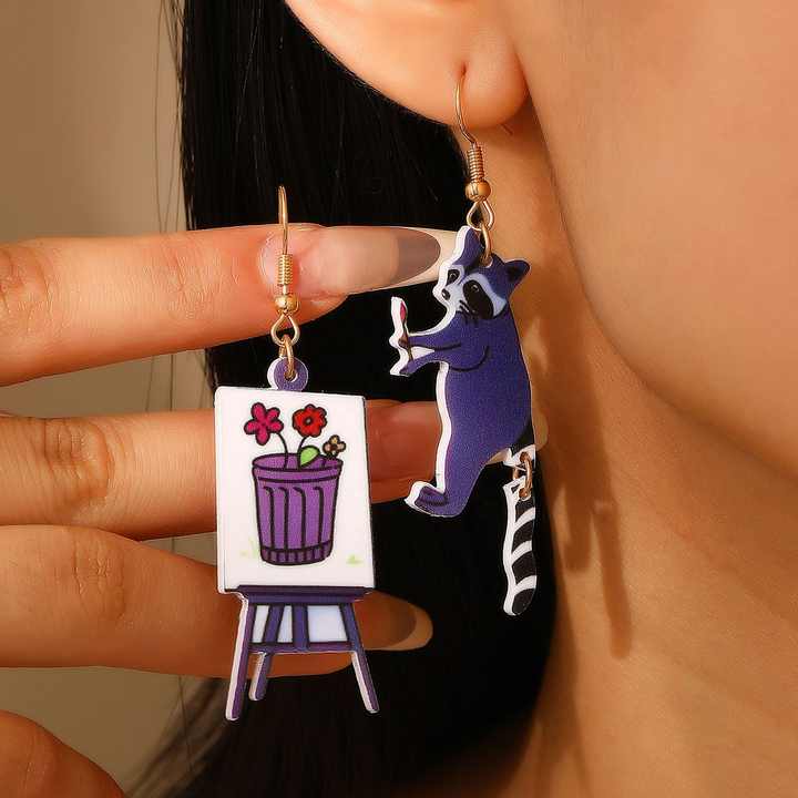 New Funny and Creative Cute Painting Raccoon Acrylic Earrings for Women Niche Cartoon Style Frog and Duck Personalized Earrings