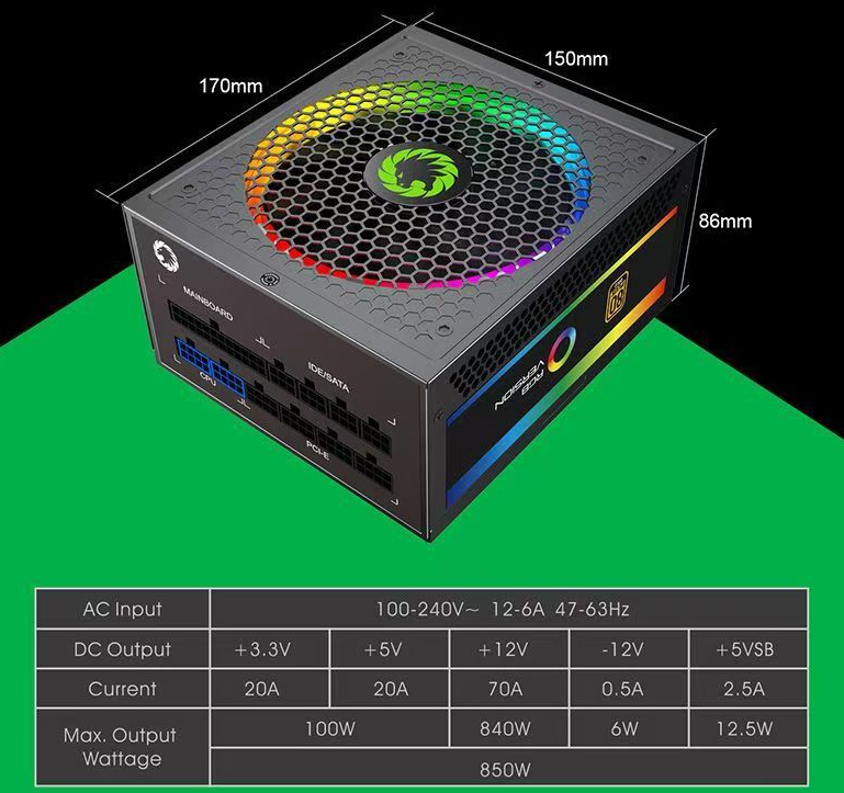 Nuovo Alimentatore per Computer da Gaming Gamemax Game Empire RGB-850 Completamente Modulare Multicolore 850W