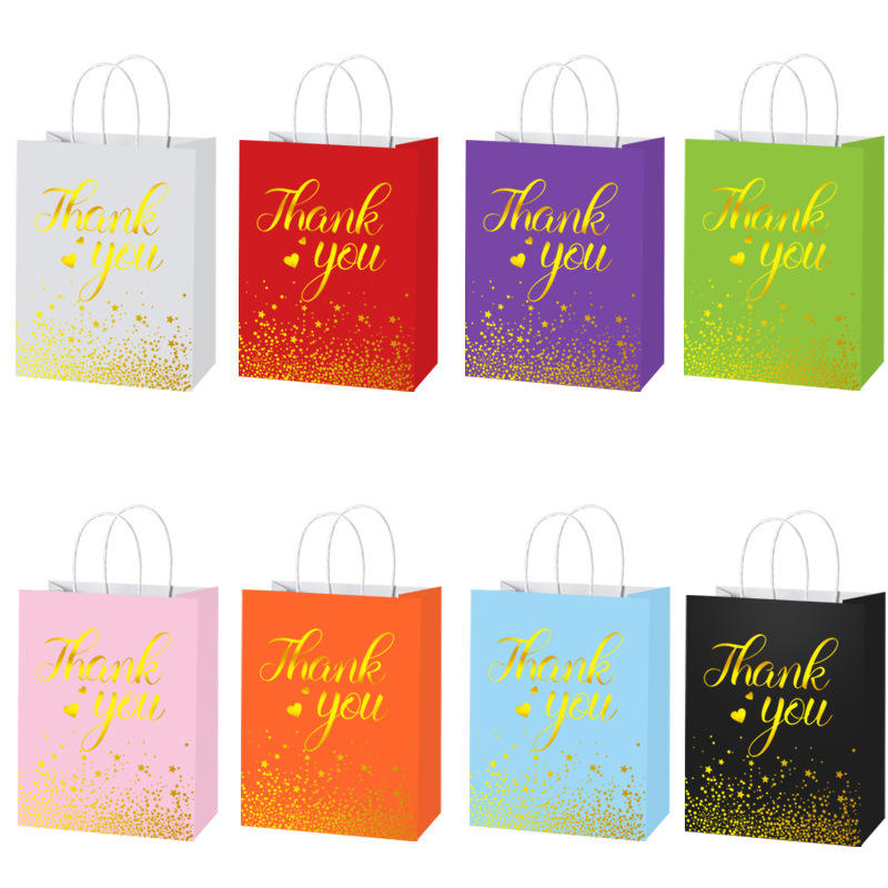 Nuova Borsa Regalo in Carta con Stampa Dorata 'Grazie', Sacchetto Rinforzato per Abbigliamento con Manici