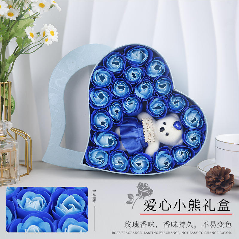 Nuovo Regalo per San Valentino e Tanabata: Orsacchiotto di Fiori Artificiali con Sapone, Peluche Corto 31cm-50cm, Confezione Regalo Vuota per la Festa della Mamma