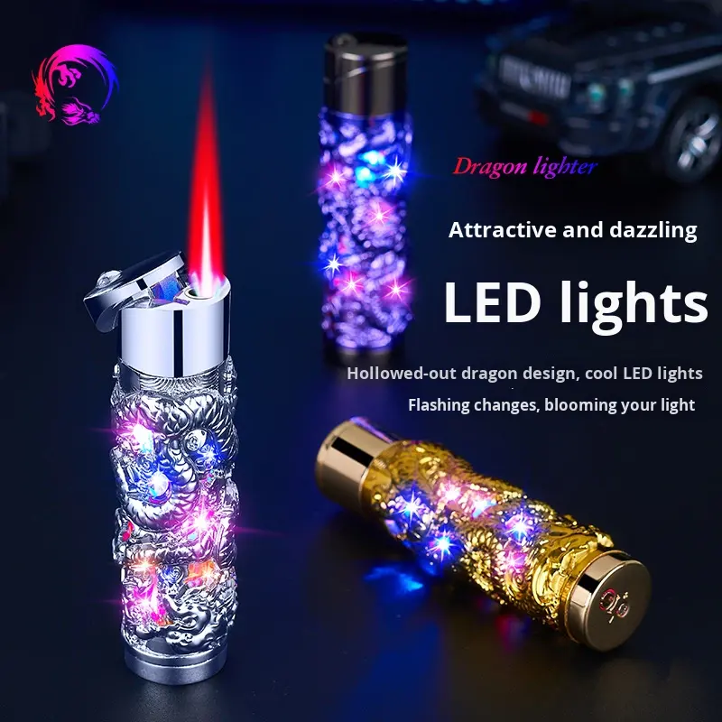 New Glitter Cylindrical Relief Dragon Metal Inflatable Lighter Butane Fuel Windproof Creative High-Value Personalized Gift Boys