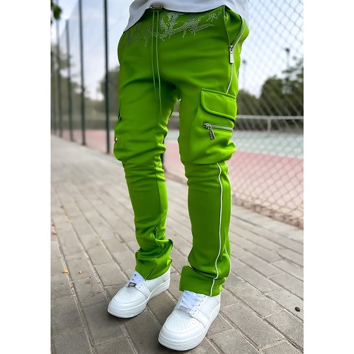 Nuovi Pantaloni Cargo Tattici Verdi da Uomo in Poliestere, Slim Fit, Antivento, con Strass