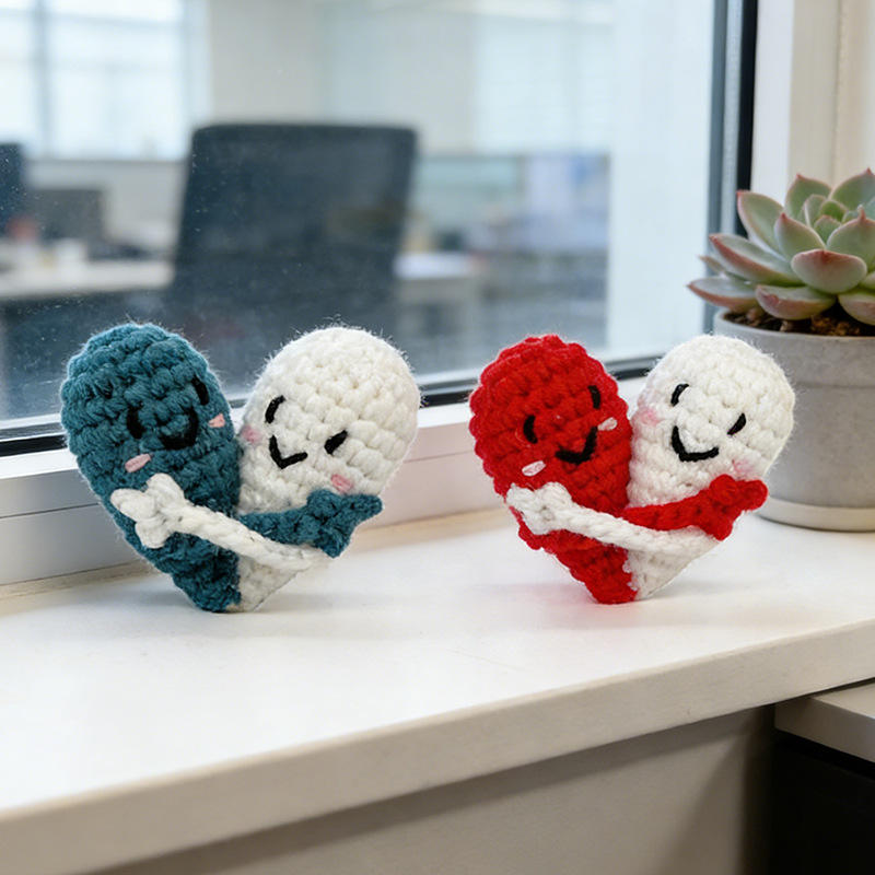 Nuova Bambola all'Uncinetto Fatta a Mano a Forma di Coppia Abbracciata con Cuore e Faccina Carina, Antistress per Decorazione Scrivania, Giocattolo di Peluche, Regalo