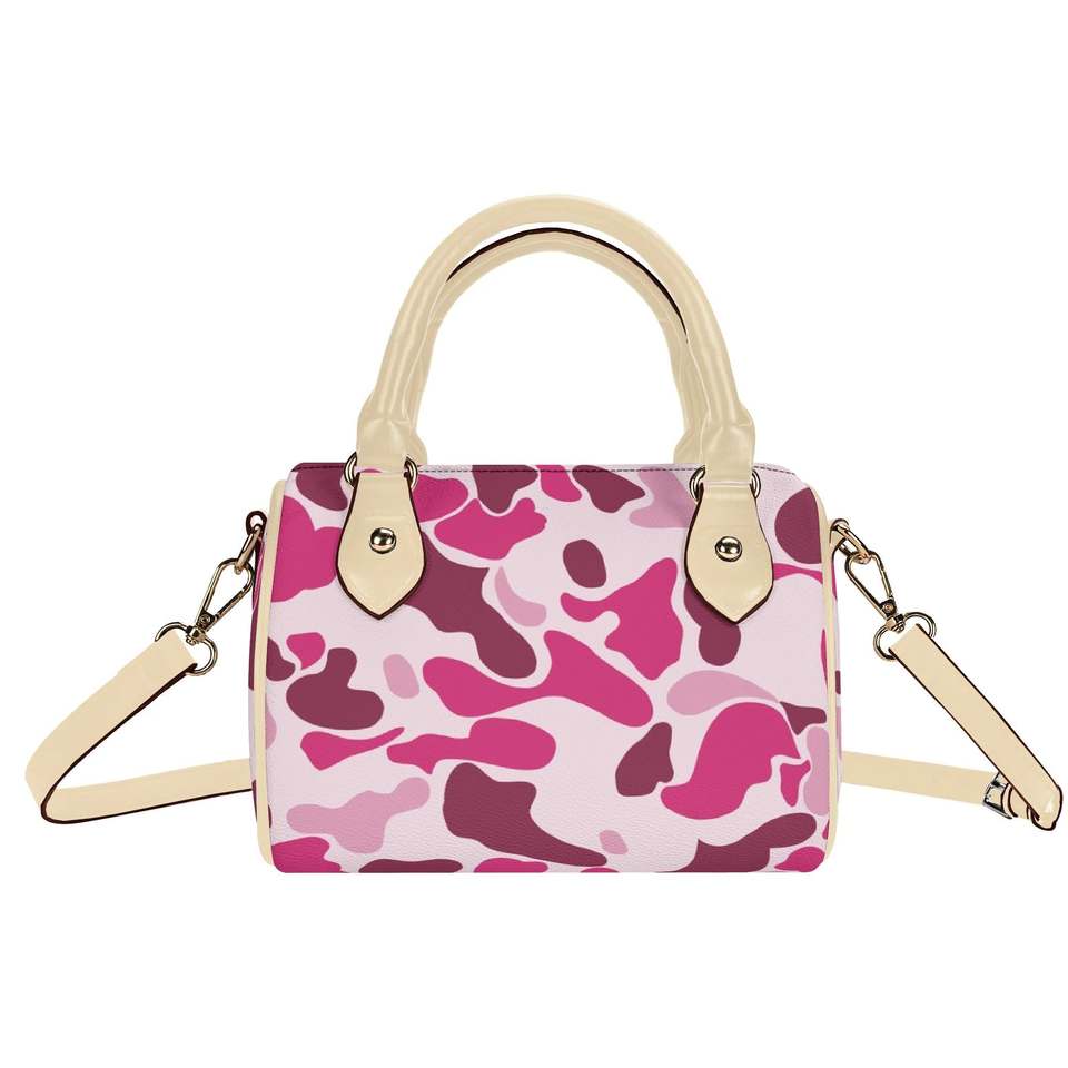 Nuova Borsa Boston di Alta Qualità, Borsa a Tracolla Personalizzata Rosa Camo per Donna, Borsa Impermeabile in Pelle PU Effetto Nuvola