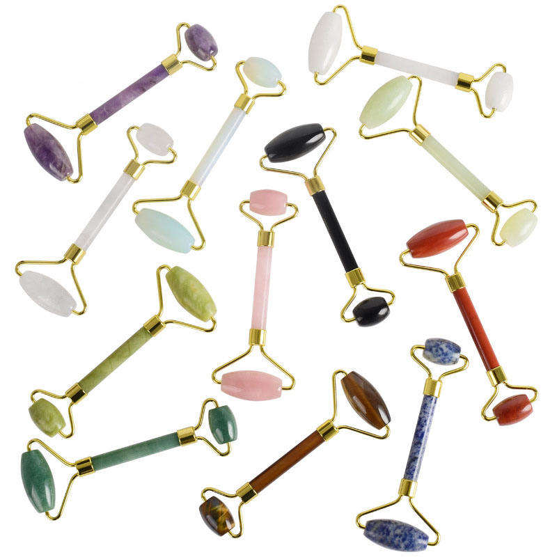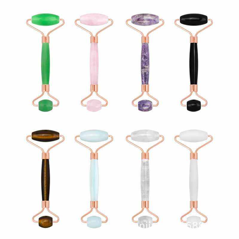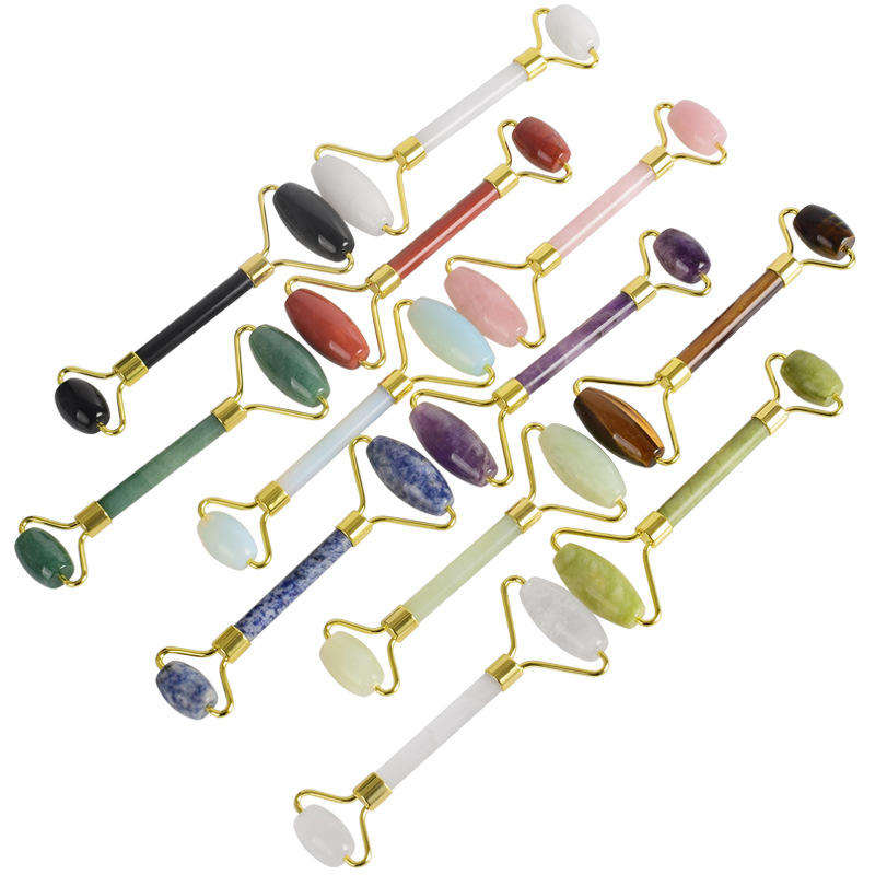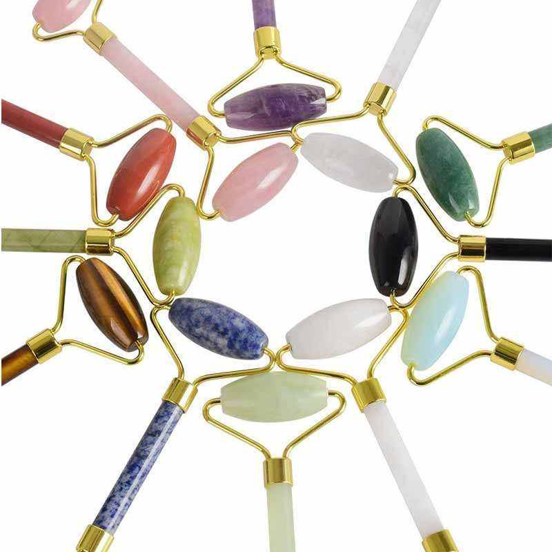 New Home 3-in-1 Natural Stone Rose Quartz Gua Sha Tools Set Anti-Aging Pink Jade Roller for Facial and Body Massage