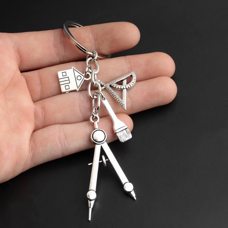 Nuovo Portachiavi a Forma di Casa, Anello Portachiavi con Righello Triangolare, Pennello e Bussola, Regalo per Architetti e Ingegneri
