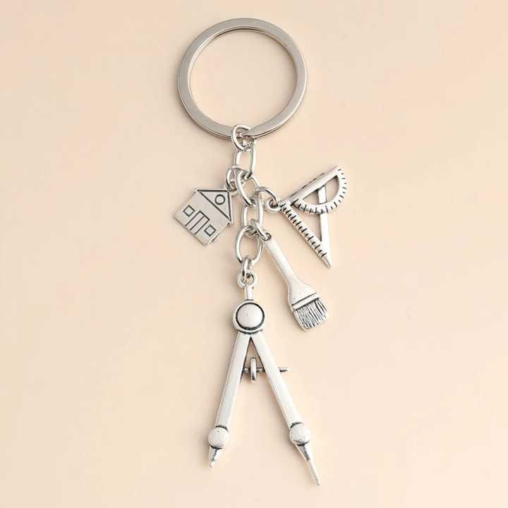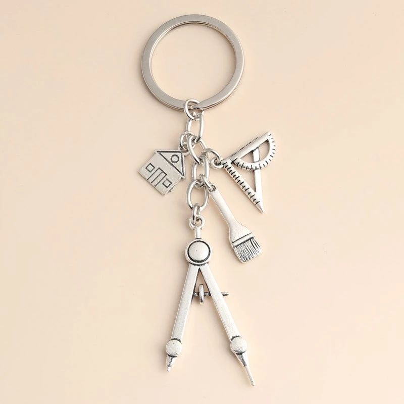 New Home portachiavi creazione di gioielli portachiavi triangolare righello pennello bussola portachiavi casa per ingegnere ingegnere disegno regali