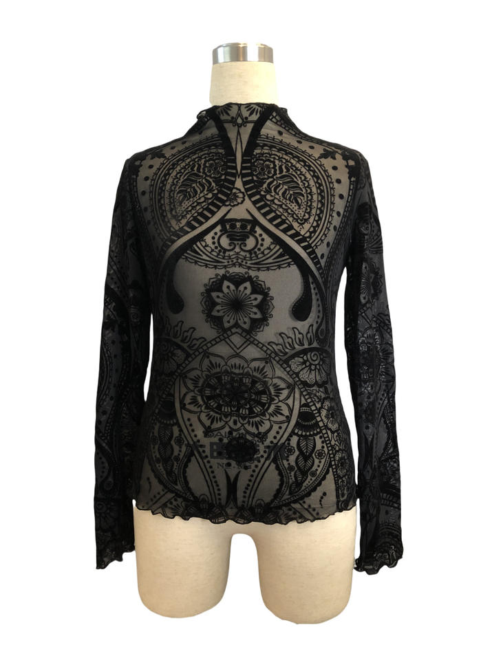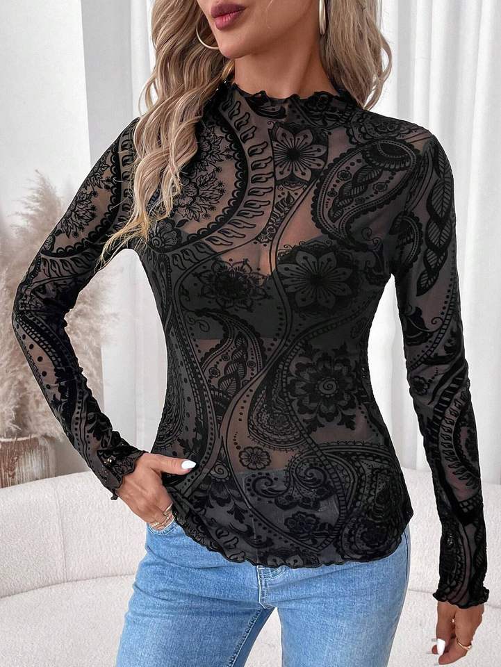Nuova Camicetta Estiva Nera da Donna a Maniche Lunghe con Volant e Rete, Modello Slim 2026 - Hot Sale