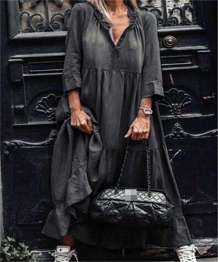 Nuovo Vestito Casual da Donna a Mezza Manica con Scollo a V, Ampio e Morbido, Tinta Unita, Lunghezza Media