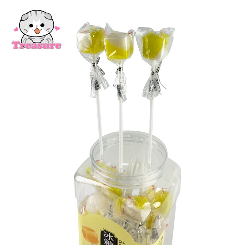 New Item Rock Sugar and Pear Flavor Square Shape Fruit Flavor Hard Candy Lollipop for Kids