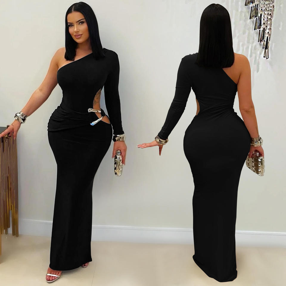 New Item S-2XL Women's Clothing Solid Color Sexy Girl Slanted Collar Backless Slim Long Dress for Women