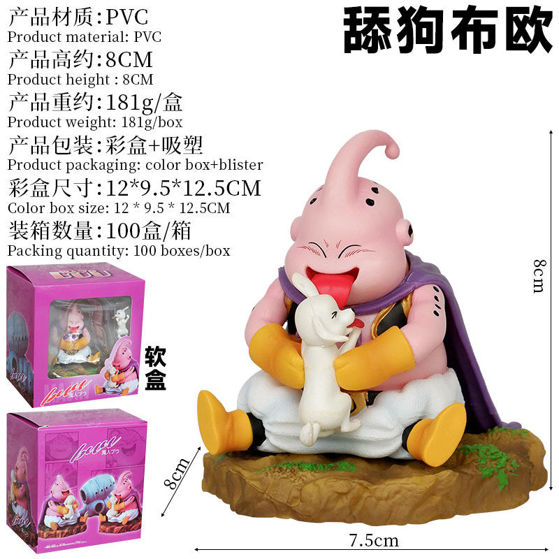 New Japan Anime 8cm Sitting Posture Model Super Saiyan Demon Buu Gk Fat Buu Licking Dog Scene Dragonball Z Anime Action Figure