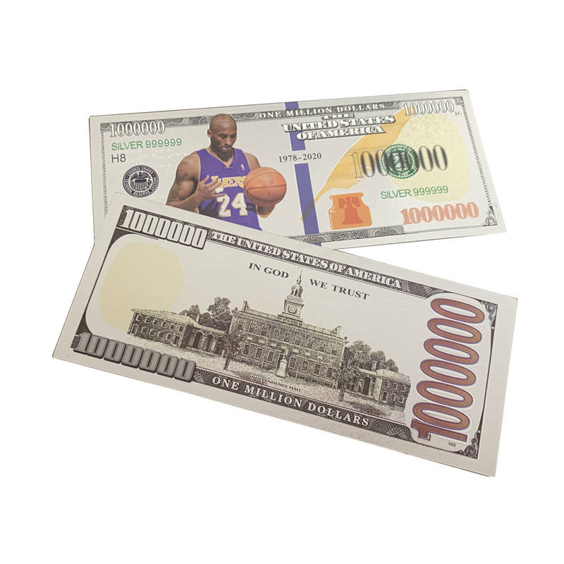 New Kobe Bryant One Million Dollar Money Silver Foil Banknote Kobe Bryant Dollar Bills
