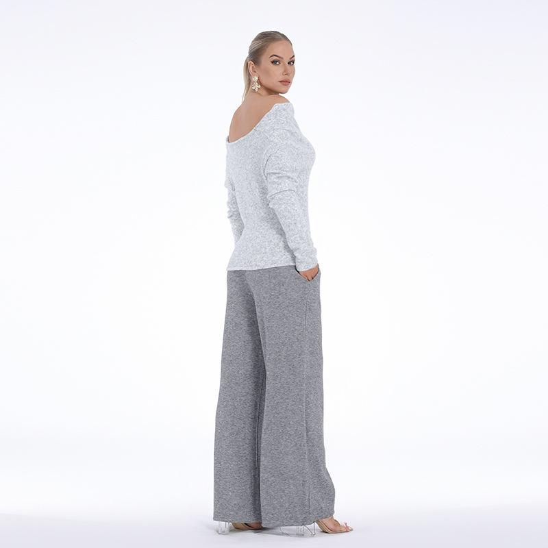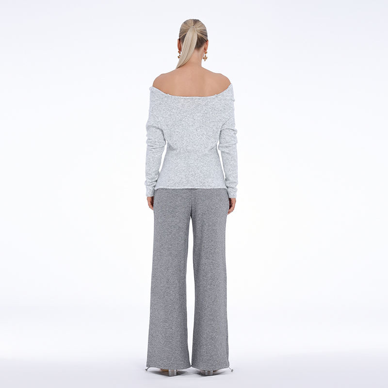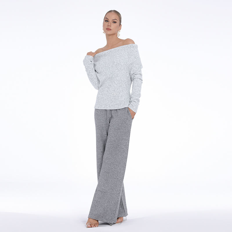 Camicia lavorata a maglia a manica lunga con stampa tinta unita nuova signora monospalla oversize t-Shirt con decorazione Logo stile Casual