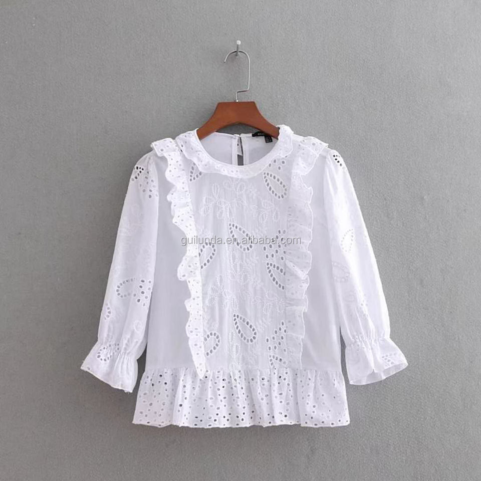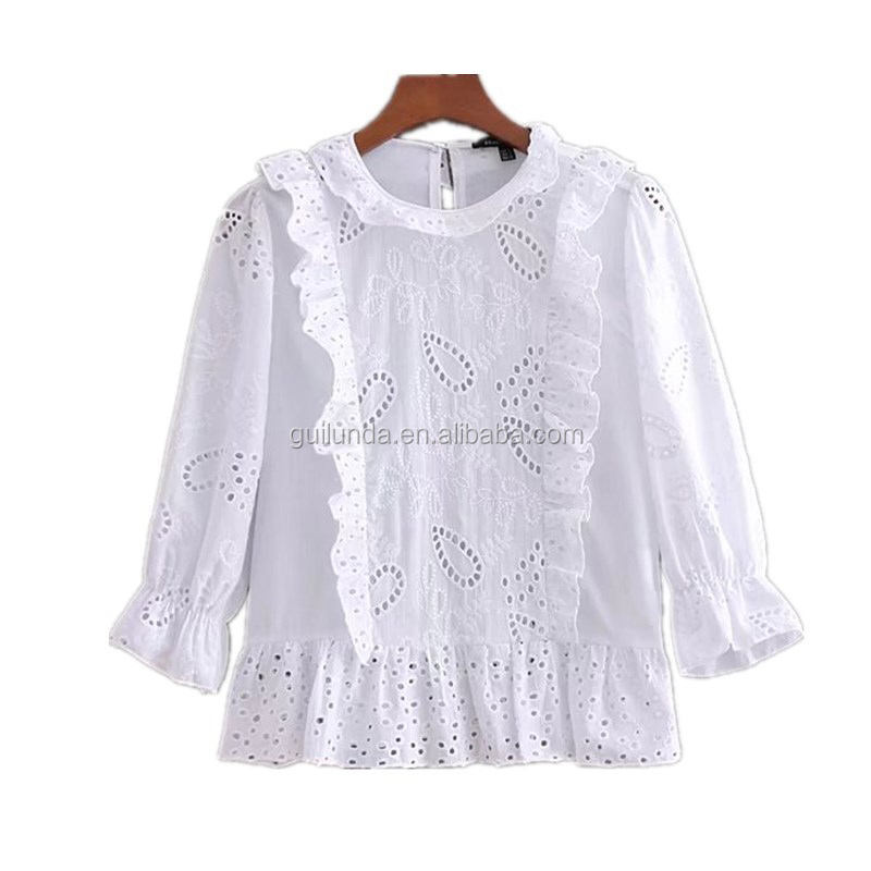 Nuova signora pianura tinta confortevole camicia di cotone camicetta bianca