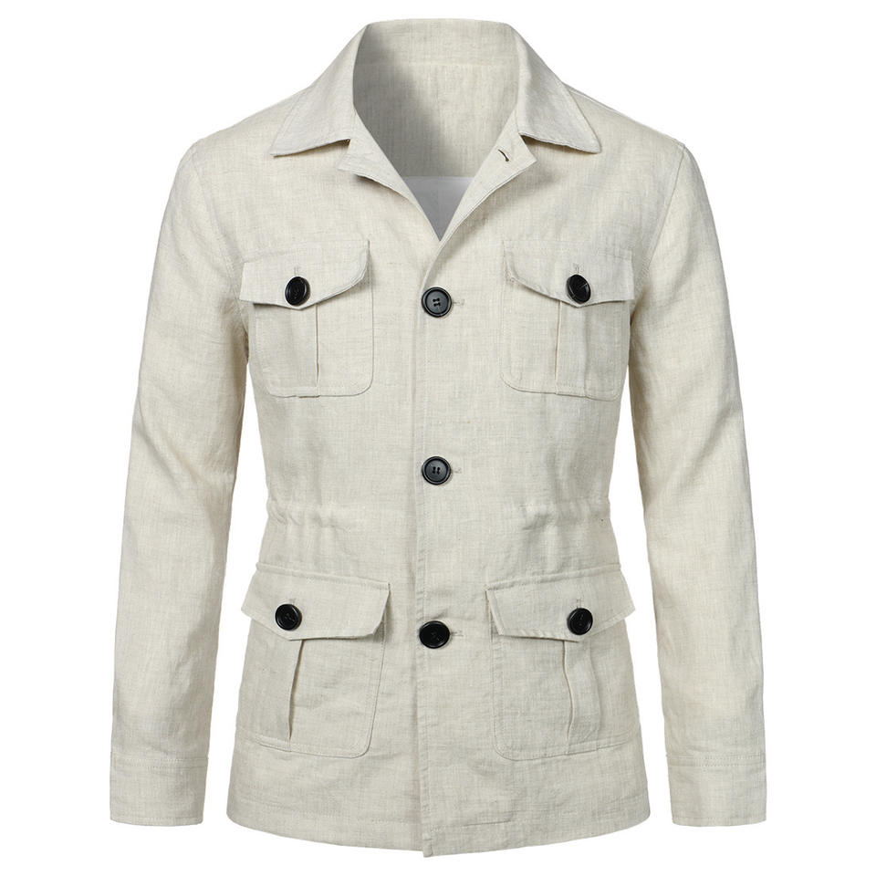 Nuova Giacca Cargo Multitasche con Risvolto da Uomo, Cappotto Casual in Lino - Sehe Fashionbisou