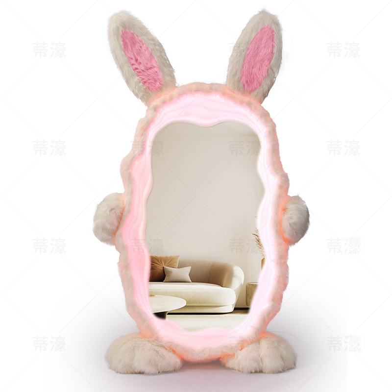 New Living Room and Bedroom Decorations with a Beautiful Standing Mirror Rabbit Plush Mirror and Floor Lamp