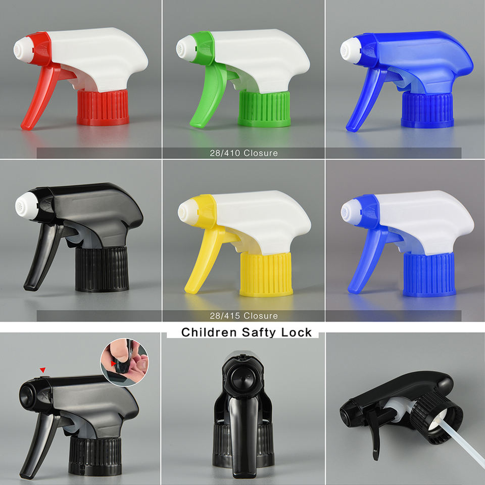 Nuovo Spruzzatore di Alta Qualità in Plastica 28/400 410/415 con Chiusura di Sicurezza per Bambini, Nero, per Bottiglie da 500ml per Pulizia