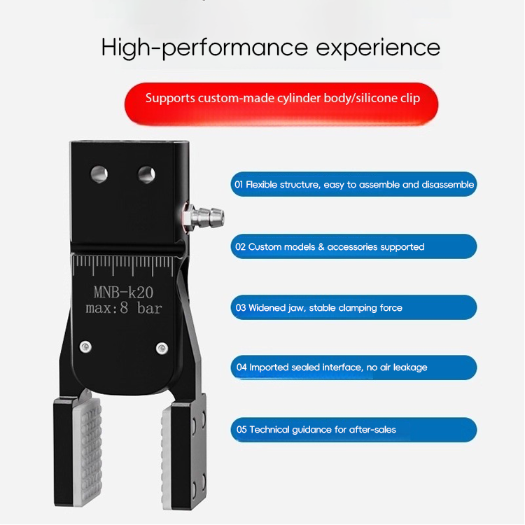 Nuovo manipolatore Mini morsetto allargare grande apertura banda rilevamento MINIA/B morsetto pneumatico in alluminio con morsetto ad arco