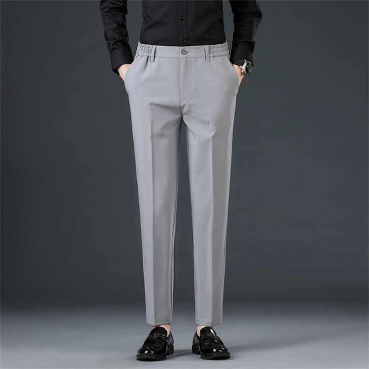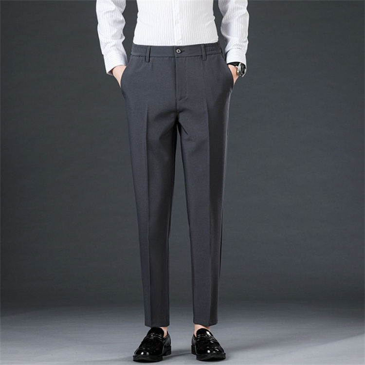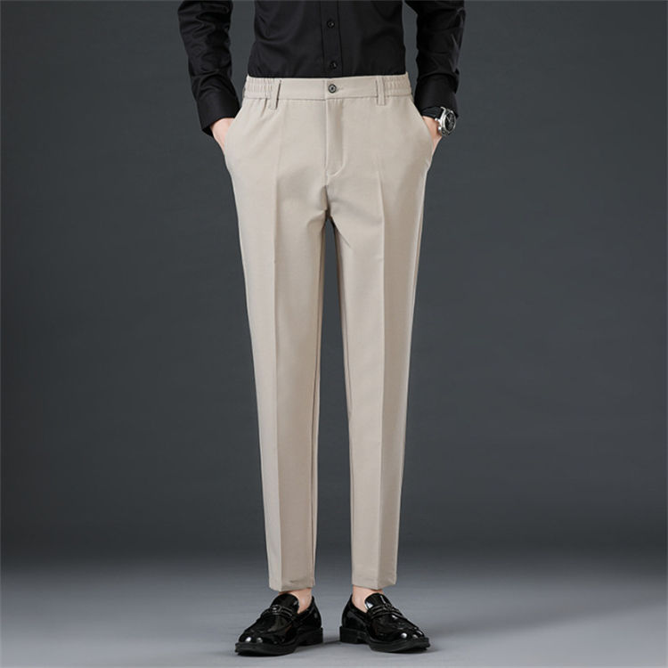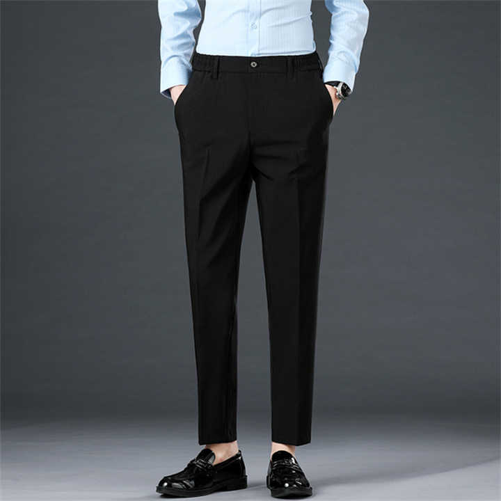 New Men Non-iron Fabric Dress Pants Slim Straight Black Apricot Dark Gray Casual Pant Male Business Trousers Male Suit Pants