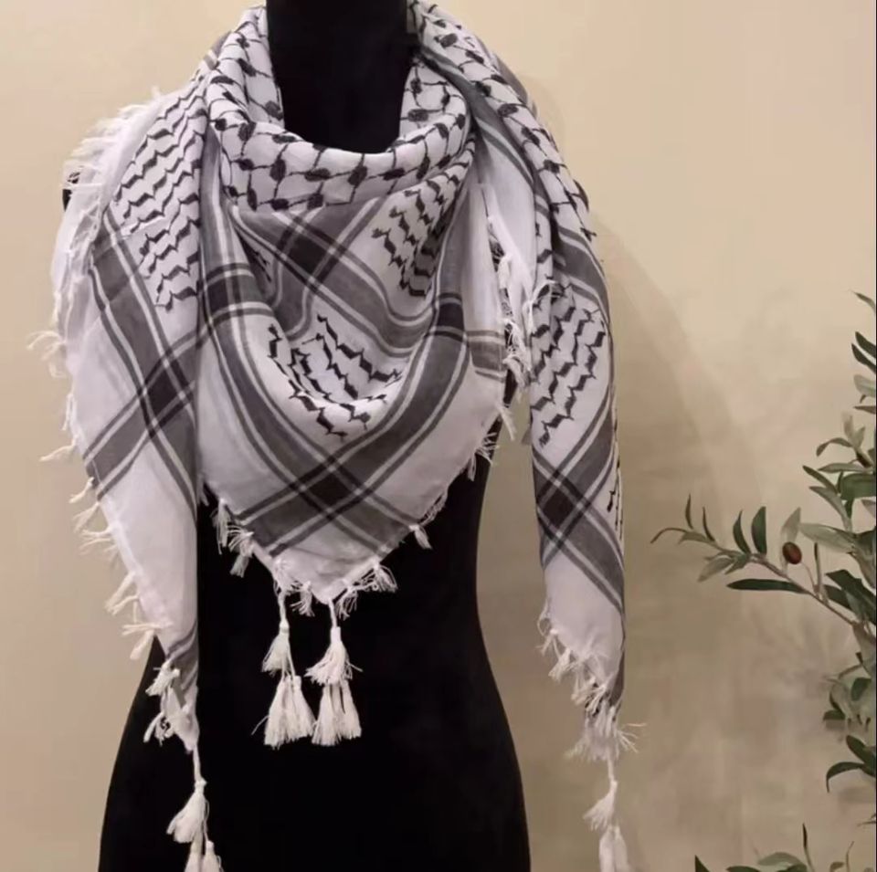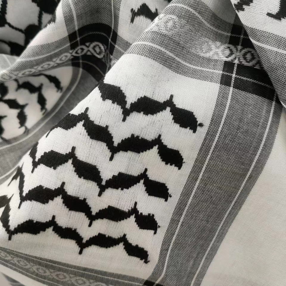 New Men Shemagh Woven Keffiyeh Scarf Arab Palestine Black on White Kufiya Arafat Hatta Original Brand Cotton Unisex Scarf Shawl