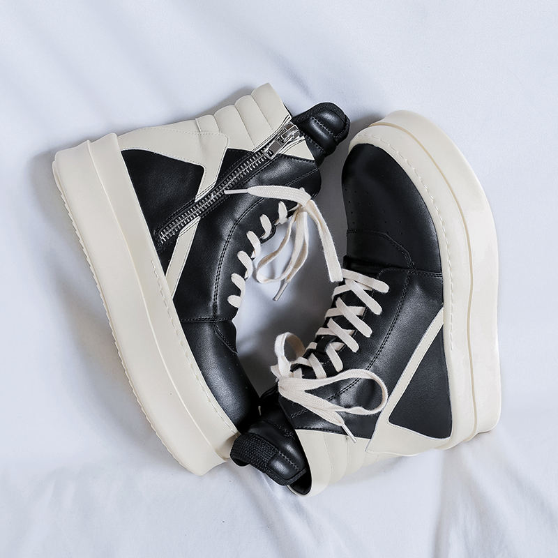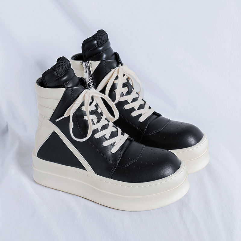 Nuove scarpe alte da uomo di grandi dimensioni 48 nere bianche rovesciate a triangolo stringate alla moda stile da passeggio Sneaker da uomo