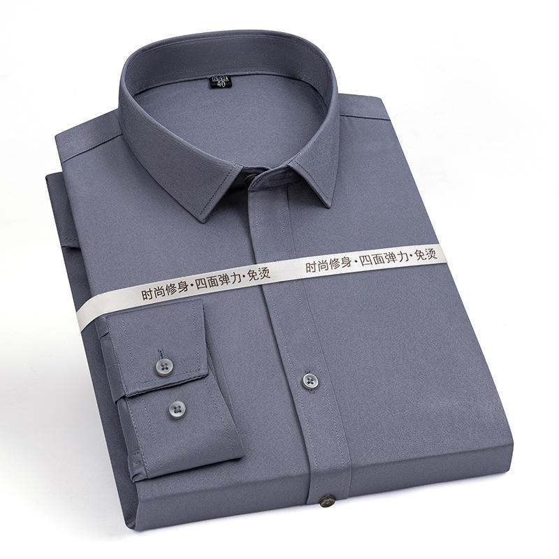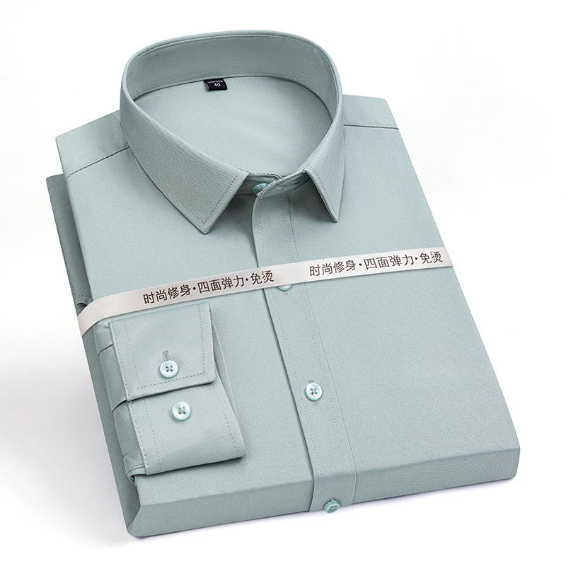 Camicia da uomo nuova da uomo in tinta unita senza stiratura a manica lunga camicia bianca formale da lavoro